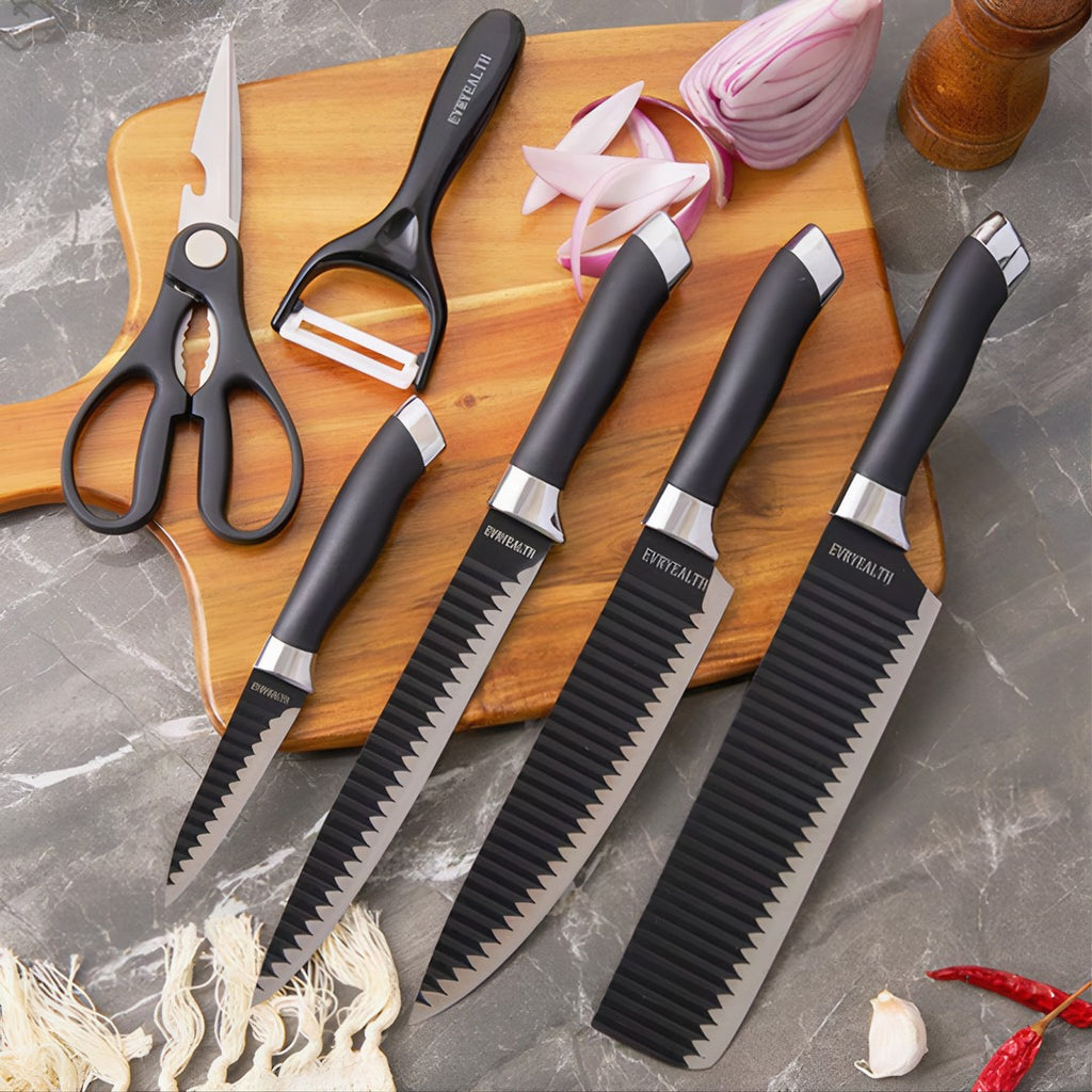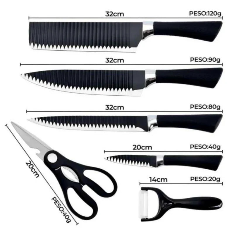 🍖 Kit Facas Profissional Antiaderente – 6 Peças 🔪
